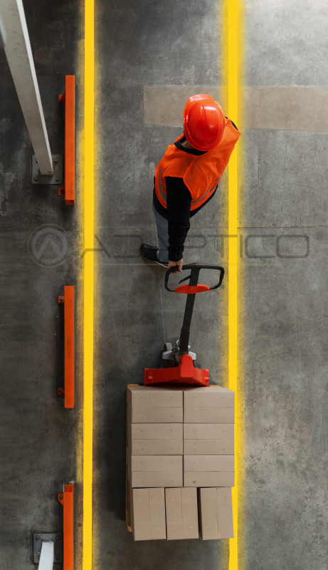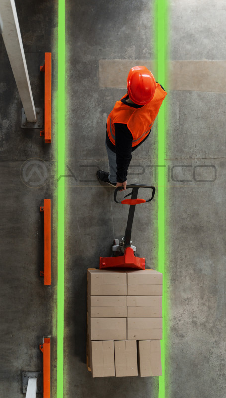 Wirtualna linia laserowa lub ledowa służy do precyzyjnego wytyczania jasnych linii, które mogą służyć jako drogi dla pieszych lub pojazdów, wyznaczanie ścieżek, przejść, czy miejsca, do których nie wolno się zbliżać, stref niebezpiecznych oraz linii naprowadzających tiry w dokach. Wysokowydajna lampa gwarantuje doskonałą widoczność w każdych warunkach oświetleniowych i pogodowych. Laser / projektor działa w sposób ciągły, wyświetlając w kolorze czerwonym, zielonym, niebieskim lub żółtym wyznaczone strefy komunikacji.